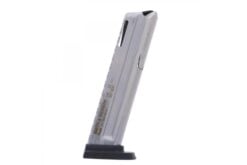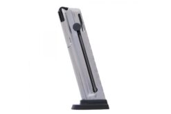 The Smith & Wesson® M&P® .22LR 12-Round Stainless Steel Magazine is a genuine Smith & Wesson factory magazine, designed to deliver smooth operation and consistent feeding performance with your Smith & Wesson rimfire pistol. Constructed of tumble-polished stainless steel, this magazine features a built-in loading button for quick, effortless reloading, while the high-tensile steel spring and polymer follower ensure smooth, reliable feeding in virtually any environment. What’s more, the precision-engineered design provides a sure fit for dependable, field-ready performance you can depend on. Will NOT fit flush in compact pistols.