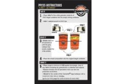 The Tannerite® 2lb Extreme Range target is meant as a shot indicator ONLY! Place target a MINIMUM of 200yards downrange in a debris free area. For best results, set target on cardboard box off of the ground to avoid ricochet. The “boom” is a kinetic reaction caused by friction of a high speed, center-fired bullet traveling at MIN 2000fps.