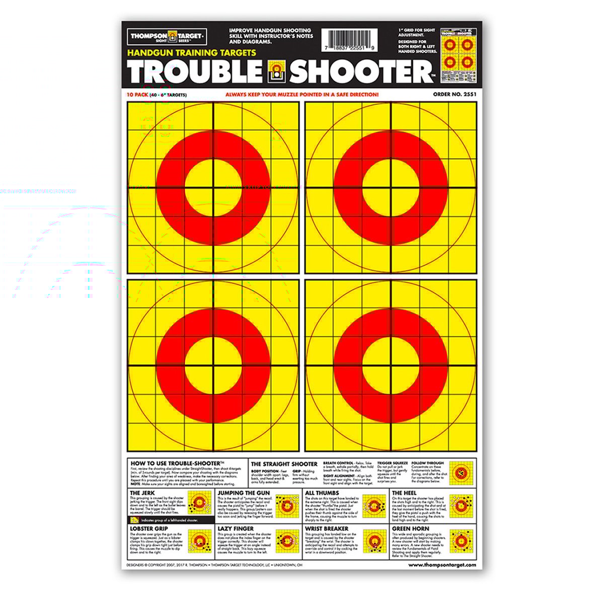 SKU: 23423 Category: Targets DescriptionIdentify and correct the most common errors in pistol shooting. The eight diagrams on Trouble-Shooter show bullet groupings associated with these shooting errors. After shooting the target, compare your bullet grouping with the grouping on the Trouble-Shooter diagrams. The instructions coupled with the diagrams help to identify errors and give proven advice to develop proper handgun shooting technique.