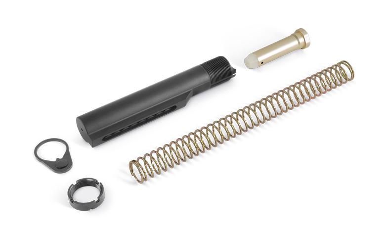 SKU: 3121 Categories: Buffer Kits, Buffers, Tubes & Kits, Carbine Buffer Kits DescriptionThe Enhanced AR Receiver Extension Kit is constructed from 6061-T6 aircraft grade aluminum and hardened steel. Featuring a 9 Position MIL-SPEC receiver extension tube you are sure to find the perfect length of pull. The buffer tube is Type III Hard Coat Anodized for maximum corrosion and wear resistance. The enhanced flat wire buffer spring with 3 oz. carbine buffer are included as well as a hardened steel castle nut and lower receiver end plate.