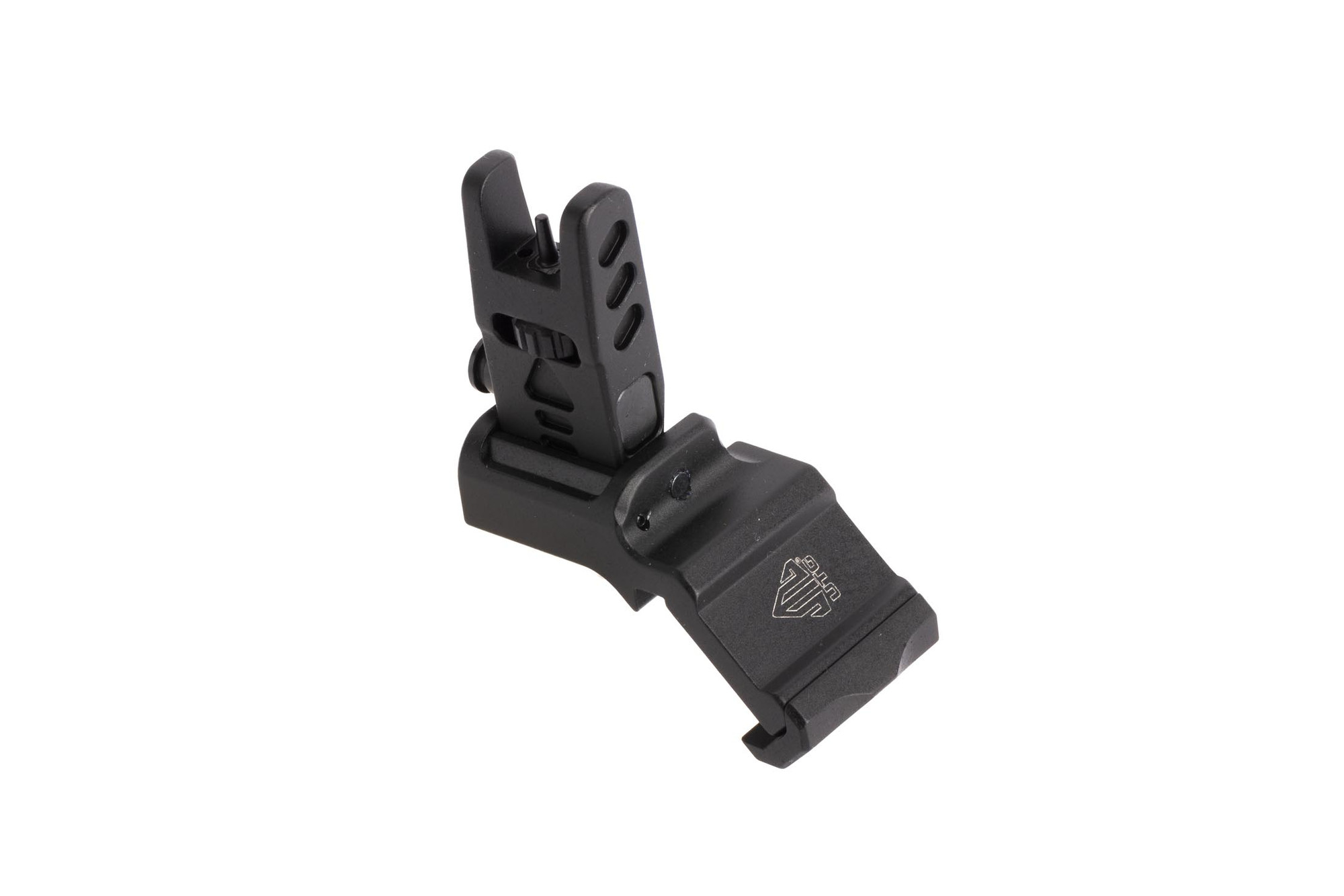 - 45-Degree angled offset sight tower locks in the deployed position