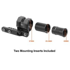 - Comes with 2 Polymer Inserts to Accept 27mm, 25.4mm (1″), or 20mm Flashlight Tube Diameters