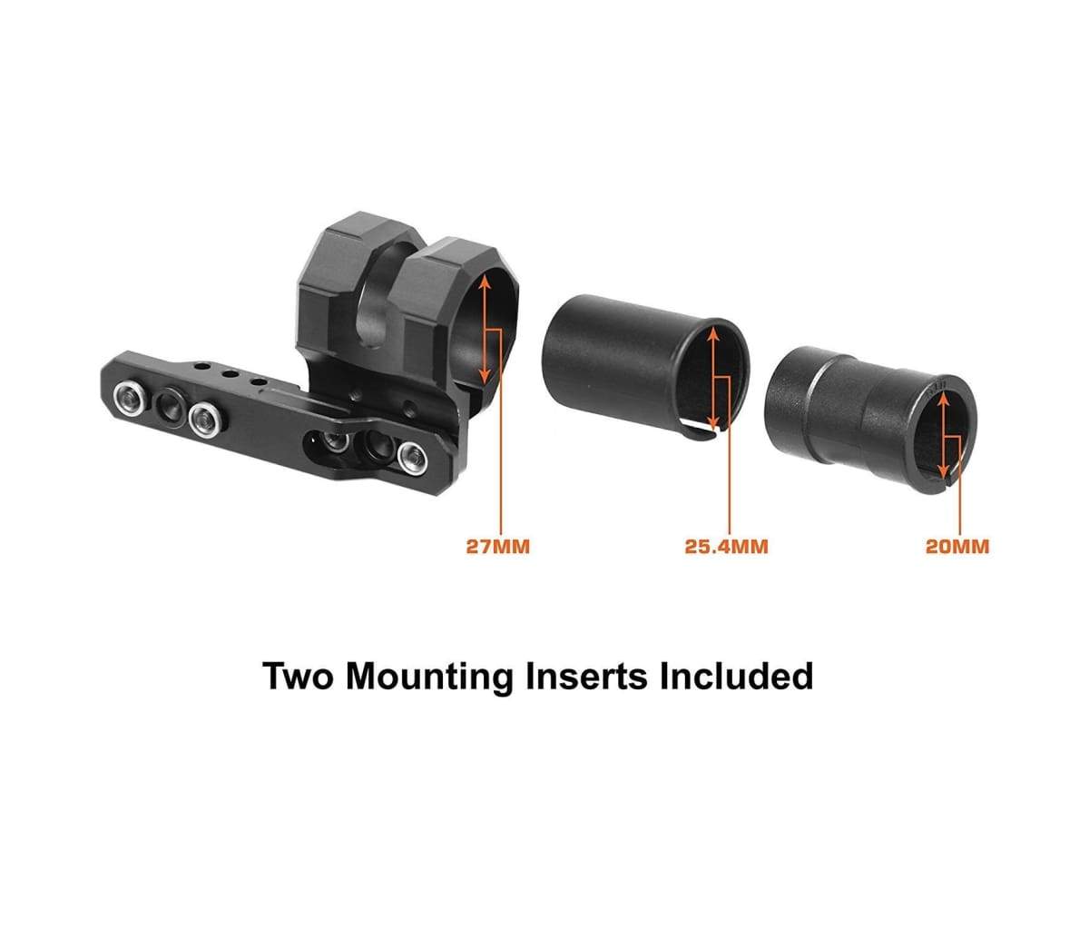 - Comes with 2 Polymer Inserts to Accept 27mm, 25.4mm (1″), or 20mm Flashlight Tube Diameters