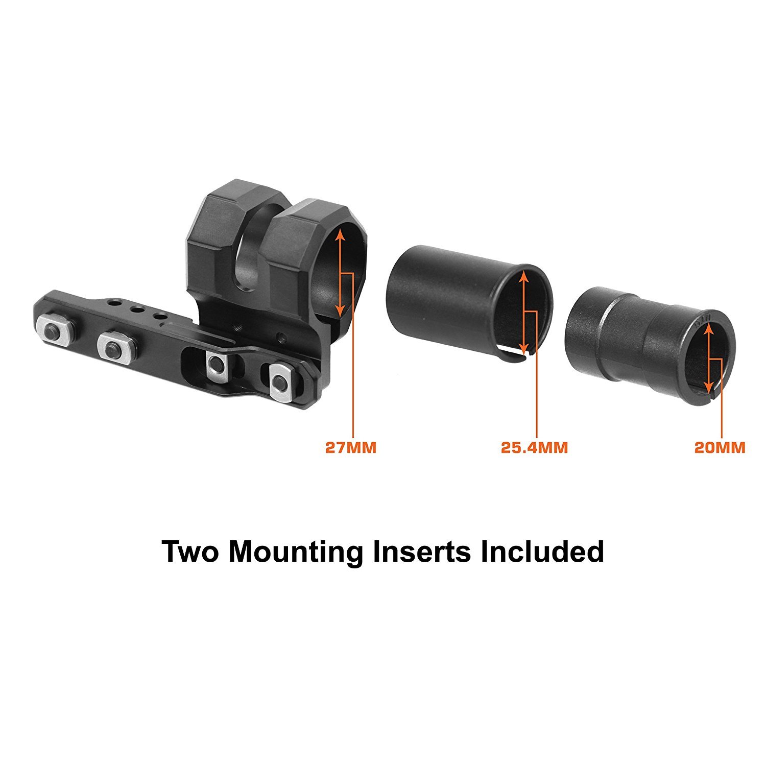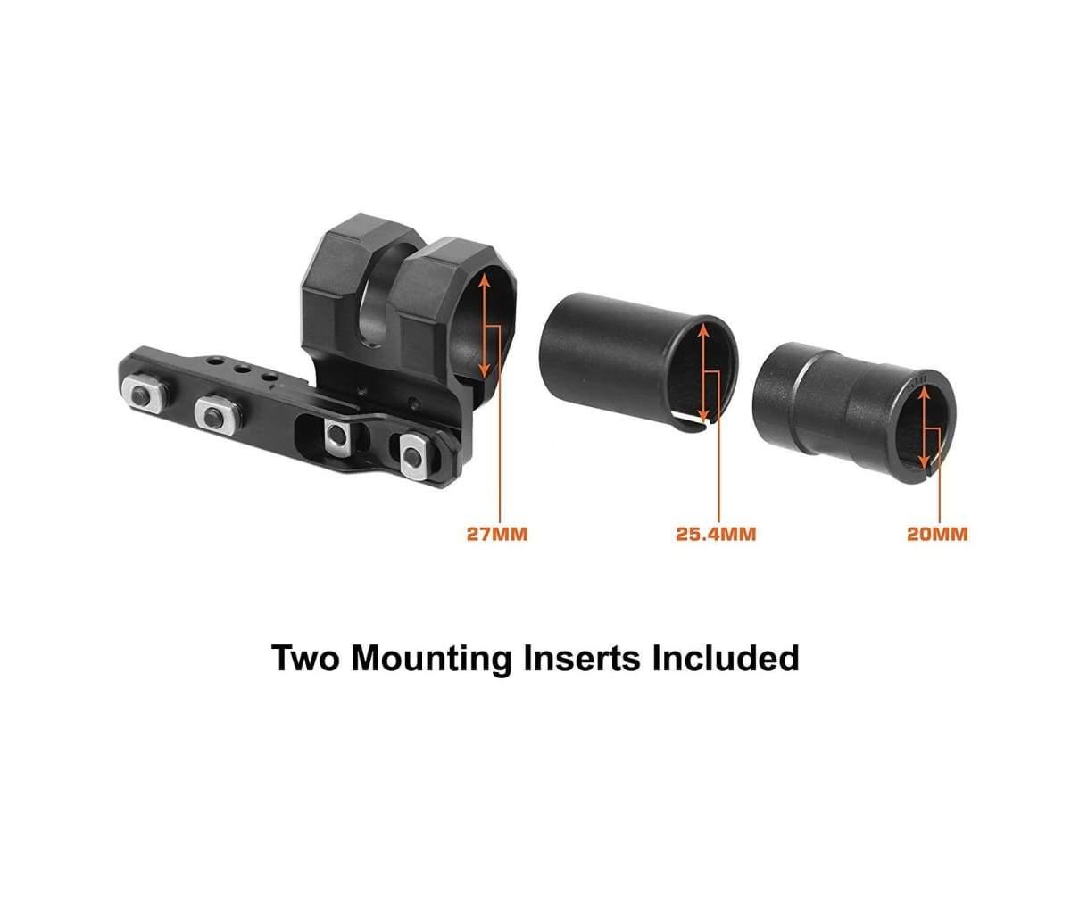 - Comes with 2 Polymer Inserts to Accept 27mm, 25.4mm (1″), or 20mm Flashlight Tube Diameters