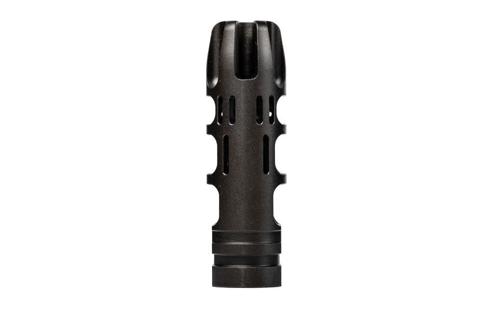 SKU: 7545 Category: Muzzle Devices DescriptionThe VG6 Precision EPSILON 65 is a high performance muzzle brake for eliminating recoil. This hybrid device features both recoil compensation and flash signature mitigation in one package. With a continued focus on improved recoil control, the EPSILON 65 features a new enhanced chamber design that improves gas flow and felt recoil measurably over previous versions. We have also focused on saving weight through both the chamber design and aggressively cut channels along the length of the device.