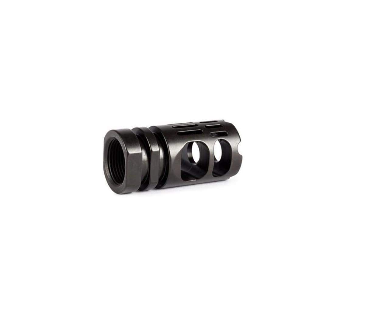 The GAMMA hybrid Muzzle Brake / Compensator eliminates recoil to almost nothing while also being designed to reduce muzzle movement both vertically and laterally. The end result provides vastly improved shooting characteristics allowing the operator to fire-off quick, on-target follow-up shots.