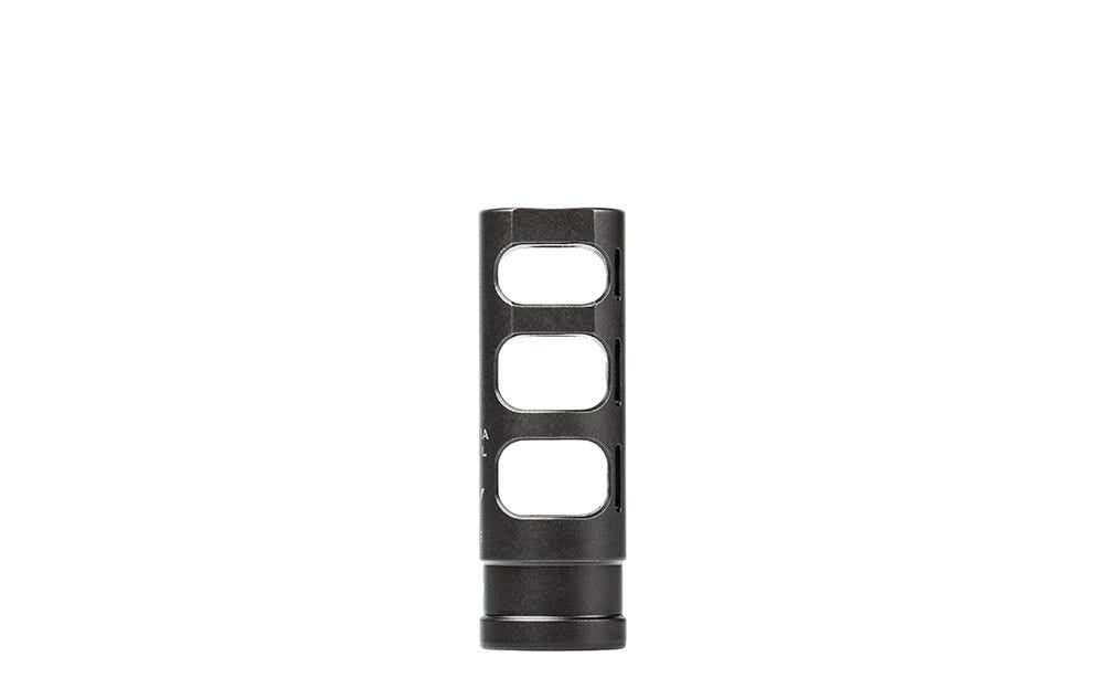 SKU: 6759 Categories: Muzzle Devices, Restricted State Compliant Description The Gamma 556SL is the perfect muzzle device for your pinned and welded builds. The Gamma 556SL is long enough to provide an overall length of 16″ when permanently affixed to the barrel. Its outside diameter of .745 inches allows you to install and service your gas system without removing the muzzle brake. The 3-chamber design looks great on any standard profile barrel while effectively eliminating recoil leaving your rifle shooting flat and soft. Additional information| Weight | 2.08 oz |