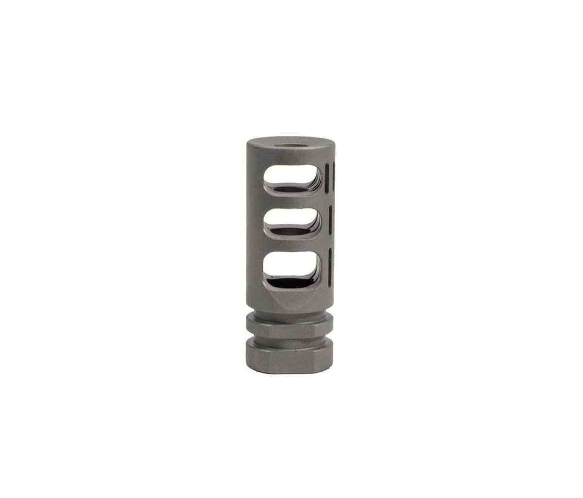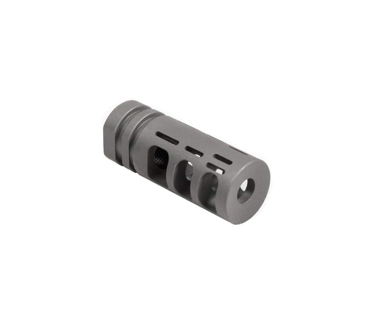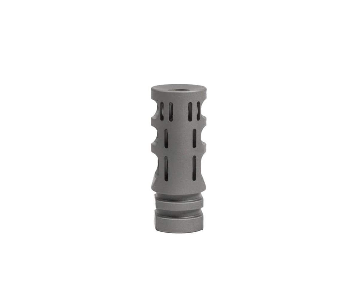 The VG6 GAMMA 762 is a muzzle brake and compensator hybrid. It virtually eliminates recoil and minimizes muzzle movement. The unique combination of both braking and compensating features inspire shooter confidence and allows the shooter to make very fast follow up shots. Its unique chamber geometries give it a very soft feel in the shoulder and the gas ports dimensions have been strenuously tested to give the utmost control to the muzzle.