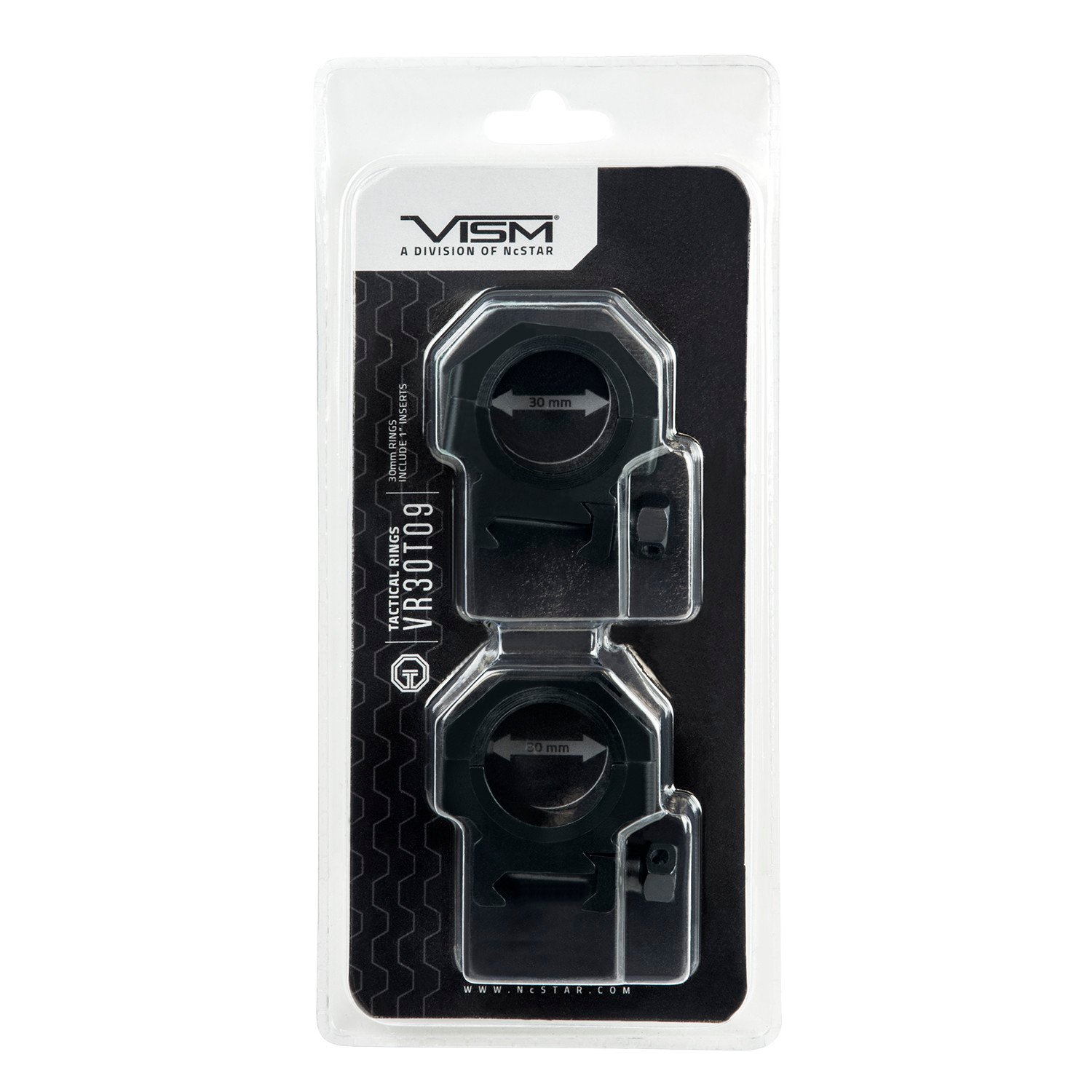Vism 30mm Tactical Riflescope Rings mount on either Weaver or Picatinny rails. Removable 1 inch inserts make these Riflescope Rings from Vism useable with both 30mm and 1 inch diameter riflescope tubes. Vism 30mm Tactical Riflescope Ring Sets are made of black anodized aluminum. Use Vism Tactical 30mm Riflescope Rings to mount the riflescope of your choice.
