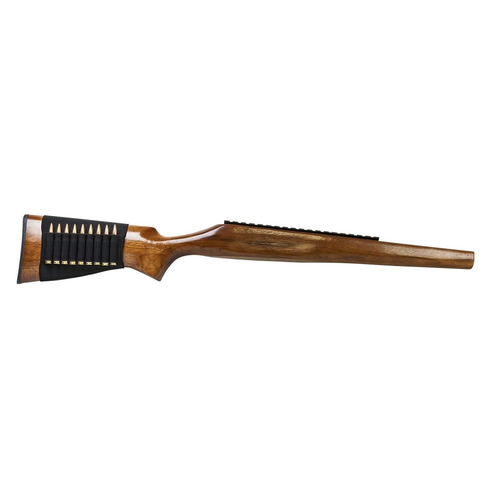 - Heavy duty two-way stretch elastic base will stretch over most standard rifle stocks and stay securely in place.