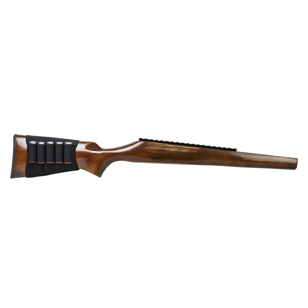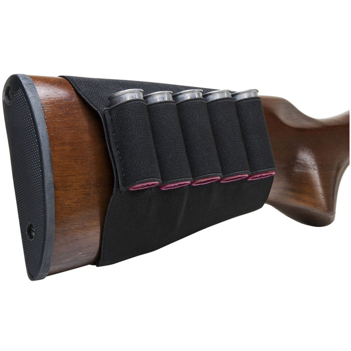 - Heavy duty two-way stretch elastic base will stretch over most standard shotgun stocks and stay securely in place.