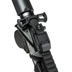 - Rear sight low profile design folds flat, to fit under the majority of scopes
