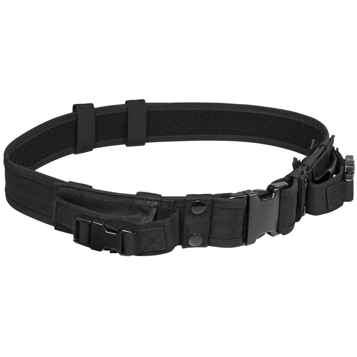 - Includes two removeable pouches with quick connect buckle flap. Suitable for double stack magazines, folding pocket knife, multi-tool, and othe essential gear. Secured to belt via hook & loop straps.