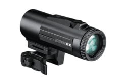 The Vortex Micro 6x Magnifier provides easy on, easy off functionality and is built to seamlessly fit onto your rifle. The Micro 6x magnifier delivers an incredibly compact 6x optical system that takes your red dot farther. The Micro 6x features robust functionality in the field, three mount heights to best fit your setup, and an adjustable flip mount that allows for left or right-handed use. The camlock system engages or disengages with direct pressure, allowing you to raise and lower the magnifier quickly and easily.