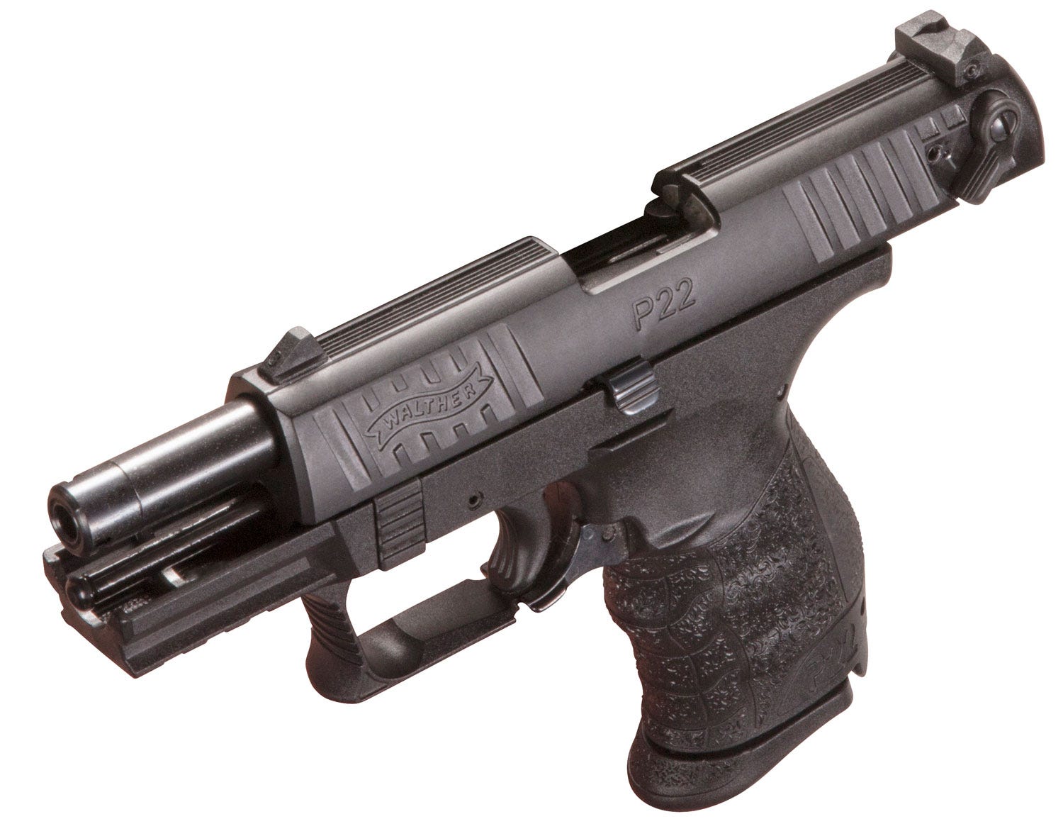 Plus, an ambidextrous magazine release and slide safety make this pistol perfect for both right and left-handed shooters. Premium features such as windage adjustable rear sight, captured recoil spring, double-action/single-action trigger, and threaded barrel help to solidify this pistol as a leader in its class. The extremely reliable Walther P22 is ready for anything from varmint control to recreational shooting.