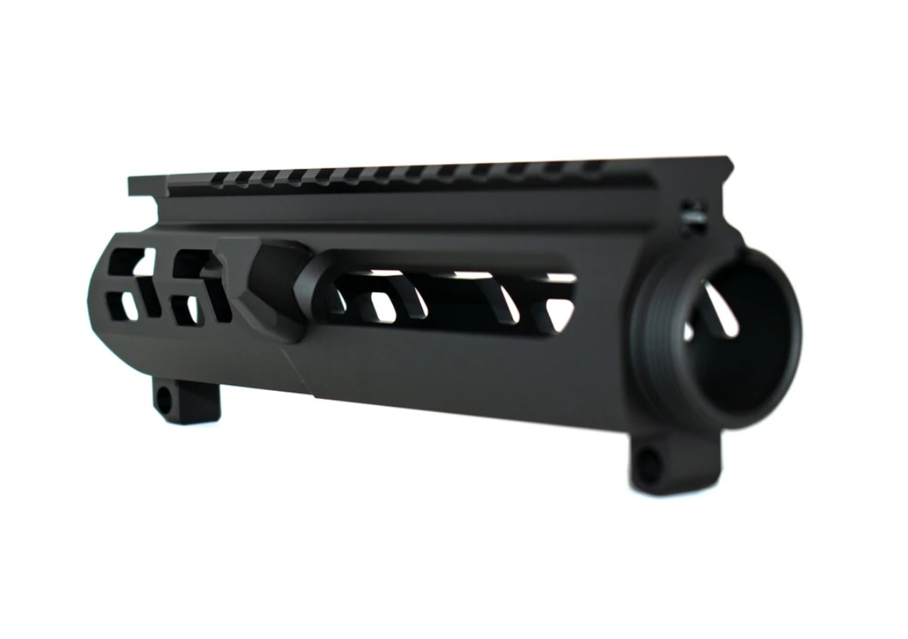 OUR WAR DOG SKELETONIZED UPPER RECEIVERS ARE STARTED FROM A THICK WALL EXTRUSION UNLIKE MOST OTHER UPPER RECEIVERS. DUE TO THE ADDED WALL THICKNESS THESE SKELETONIZED UPPER RECEIVERS ARE NOT COMPATIBLE WITH HANDGUARDS USING “ANTI ROTATION” TABS.
