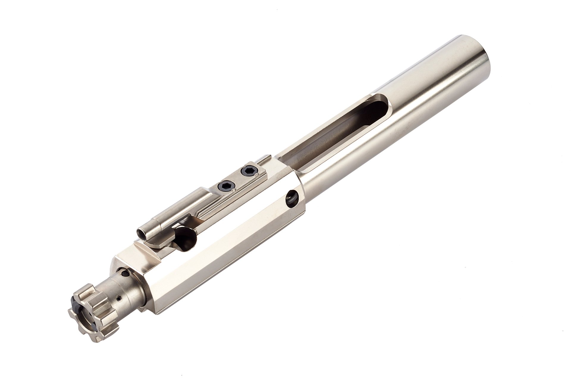 The bolt is precision machined from aerospace grade 9310 tool steel, shot-peened for increased strength and includes an S7 tool steel extractor and hardened ejector and is MPI (Magnetic Particle Inspected) and randomly batch HPT (High Pressure Tested).