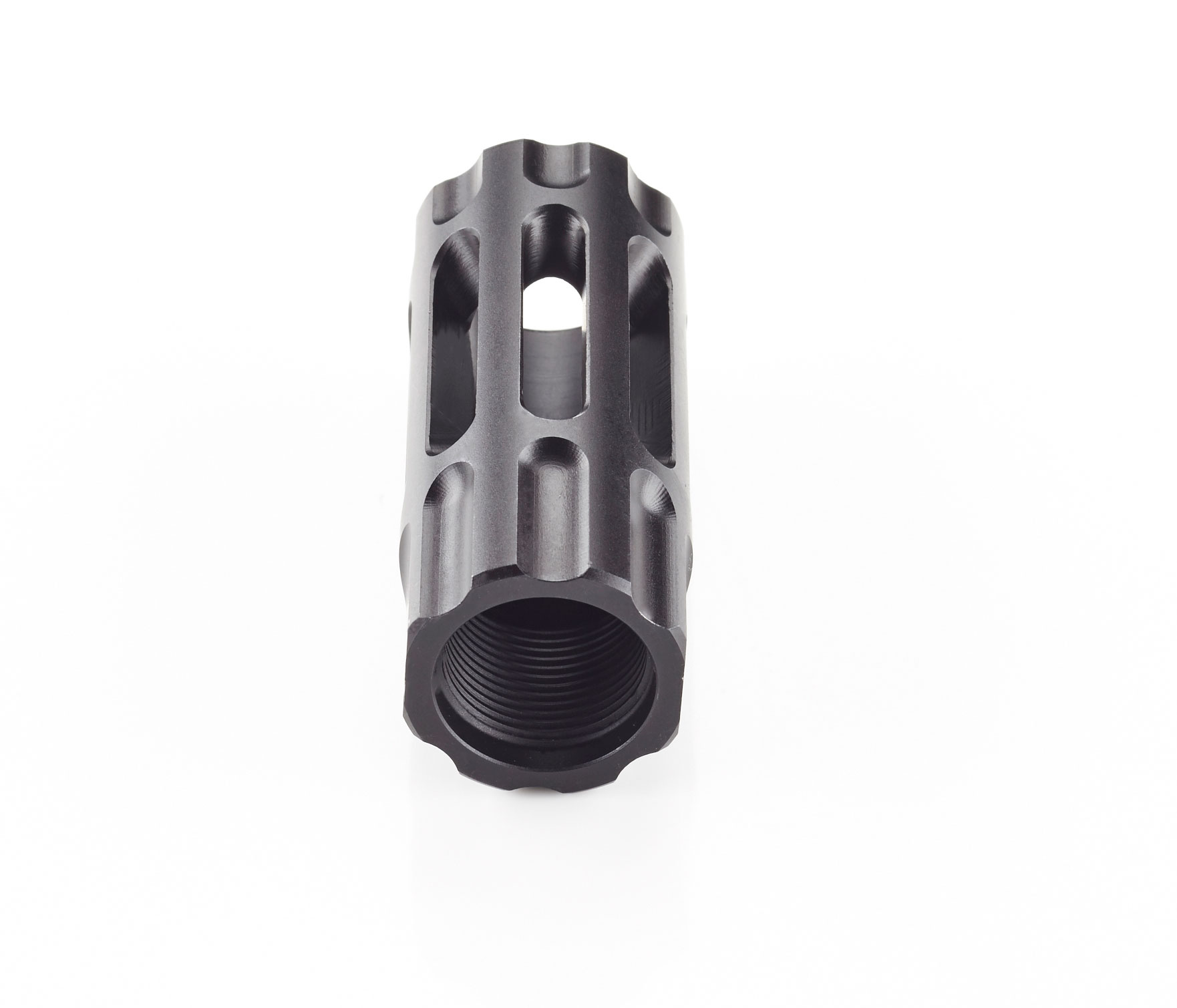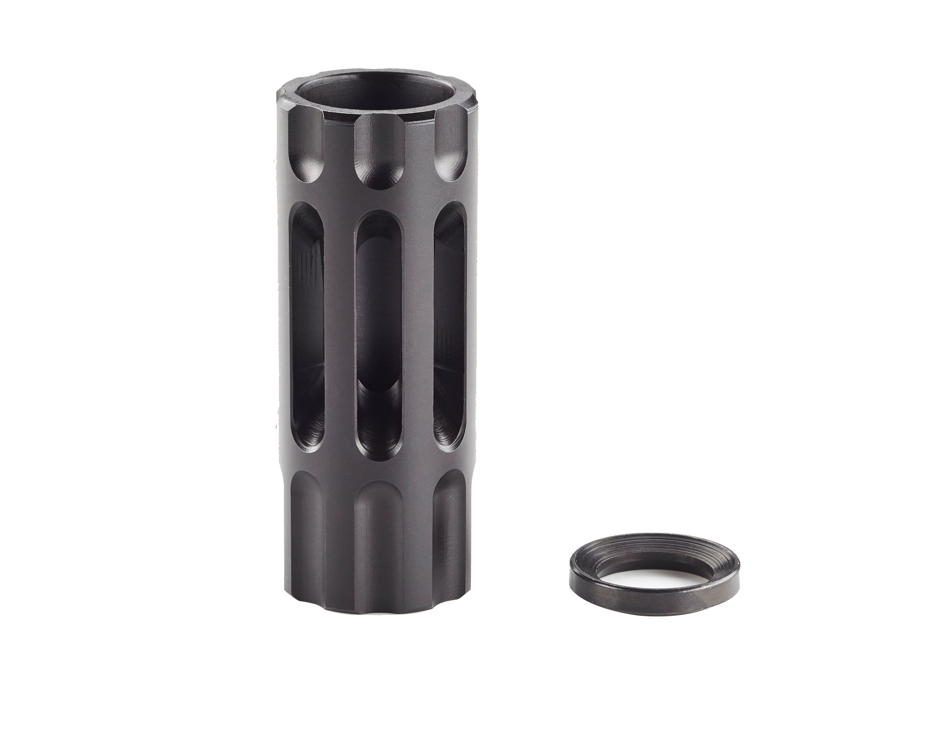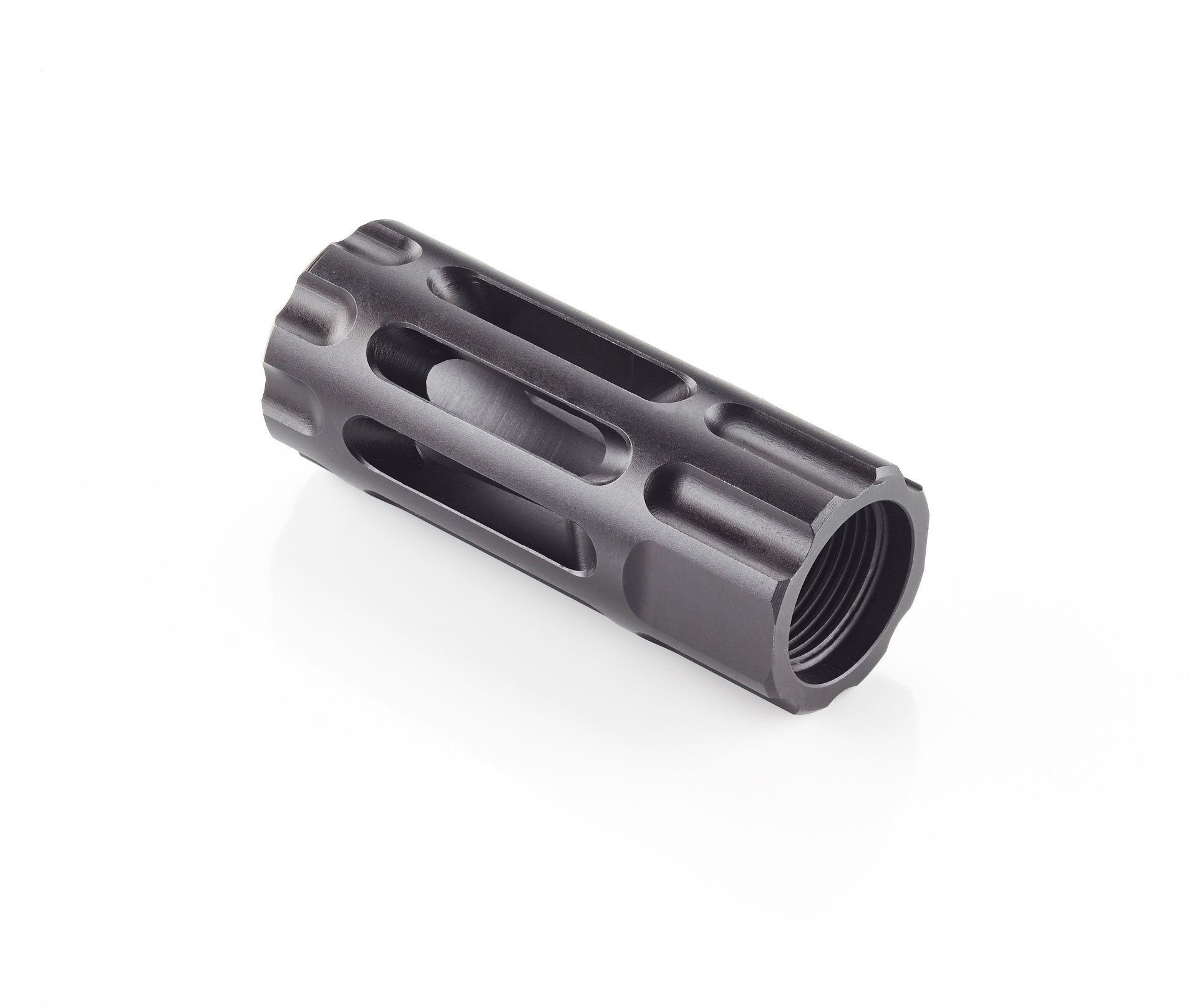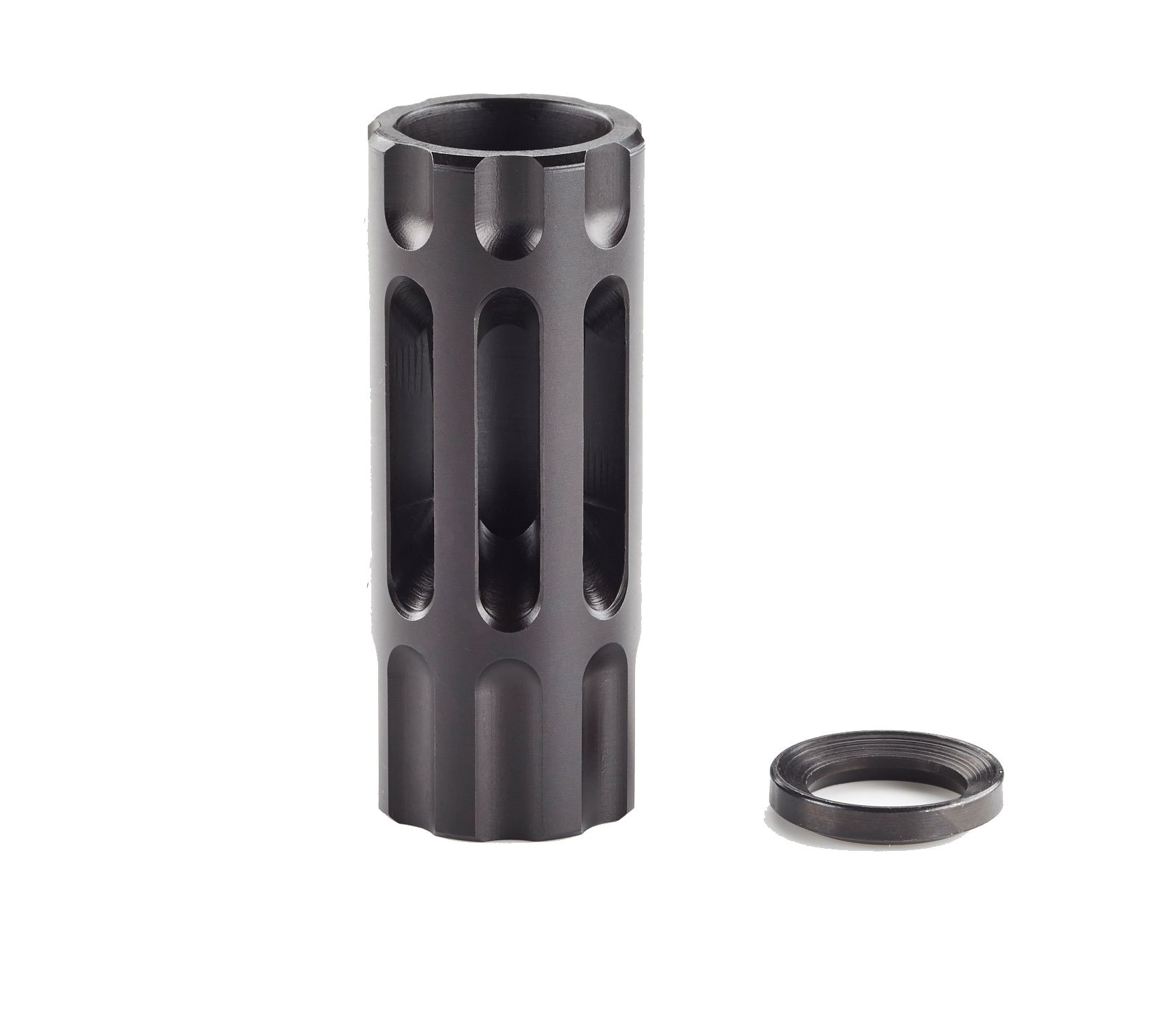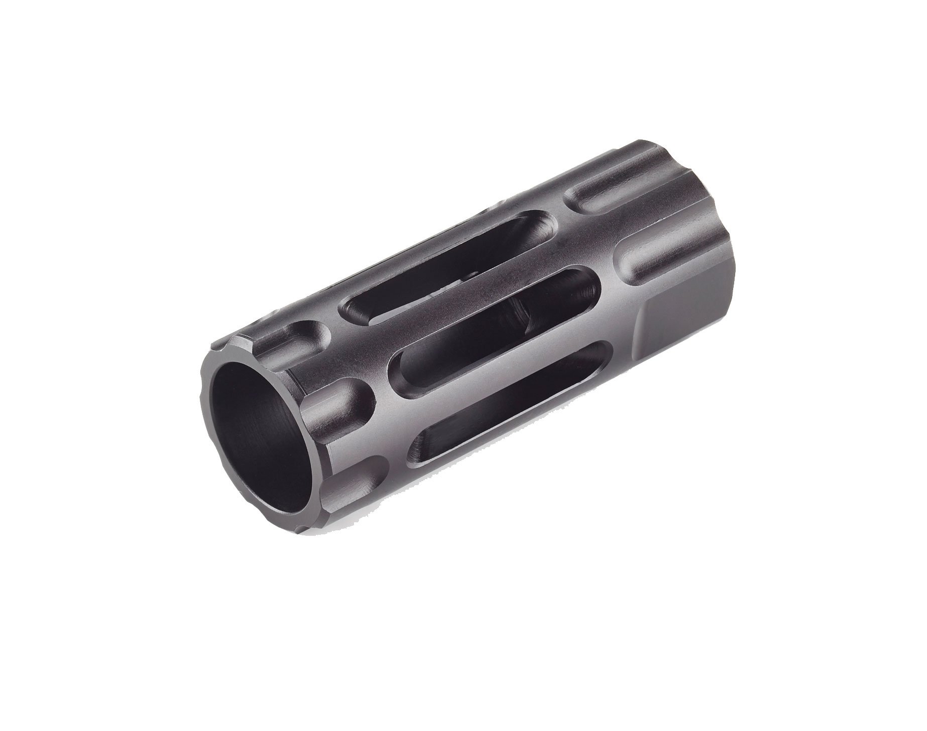 The slotted expansion chamber design of the Q-Comp has no prongs or tines to break off or snag and is Melonite QPQ coated alloy steel for maximum durability and corrosion resistance. The Q-Comp is easily installed on your AR rifle using the included crush washer.
