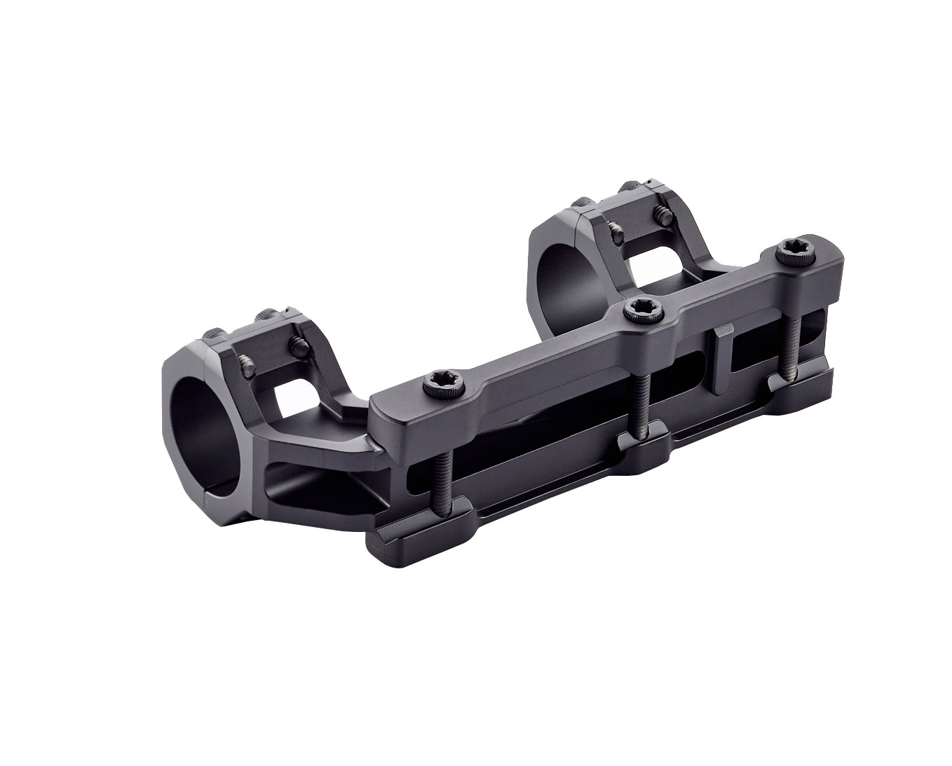 Precisely machined of 7075 Aluminum with a satin anodized finish, the V3 has a compact 5.25” long footprint with a rail to center ring height of 1.5” that is ideal for most tactical scopes with up to a 50mm objective lens. The semi-extended offset is long enough to get proper eye relief for most tactical scopes while avoiding the scope damaging tuning fork action of long cantilever mounts.