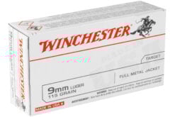 Winchester Ammunition USA 9MM 115 Grain Full Metal Jacket Handgun Ammo - 50 Rounds - WNQ4172BX