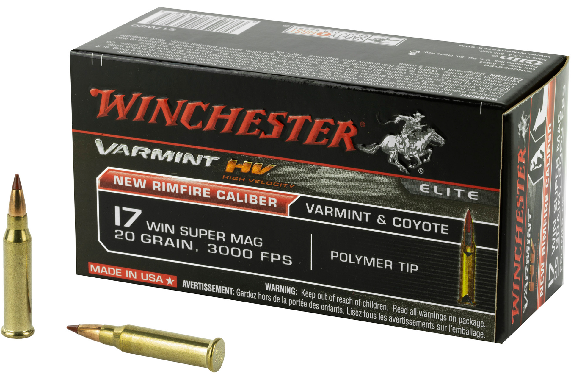 Winchester Ammunition Varmint HV 17WSM 20 Grain Polymer Tip Rimfire Ammo - 50 Rounds - WNS17W20
