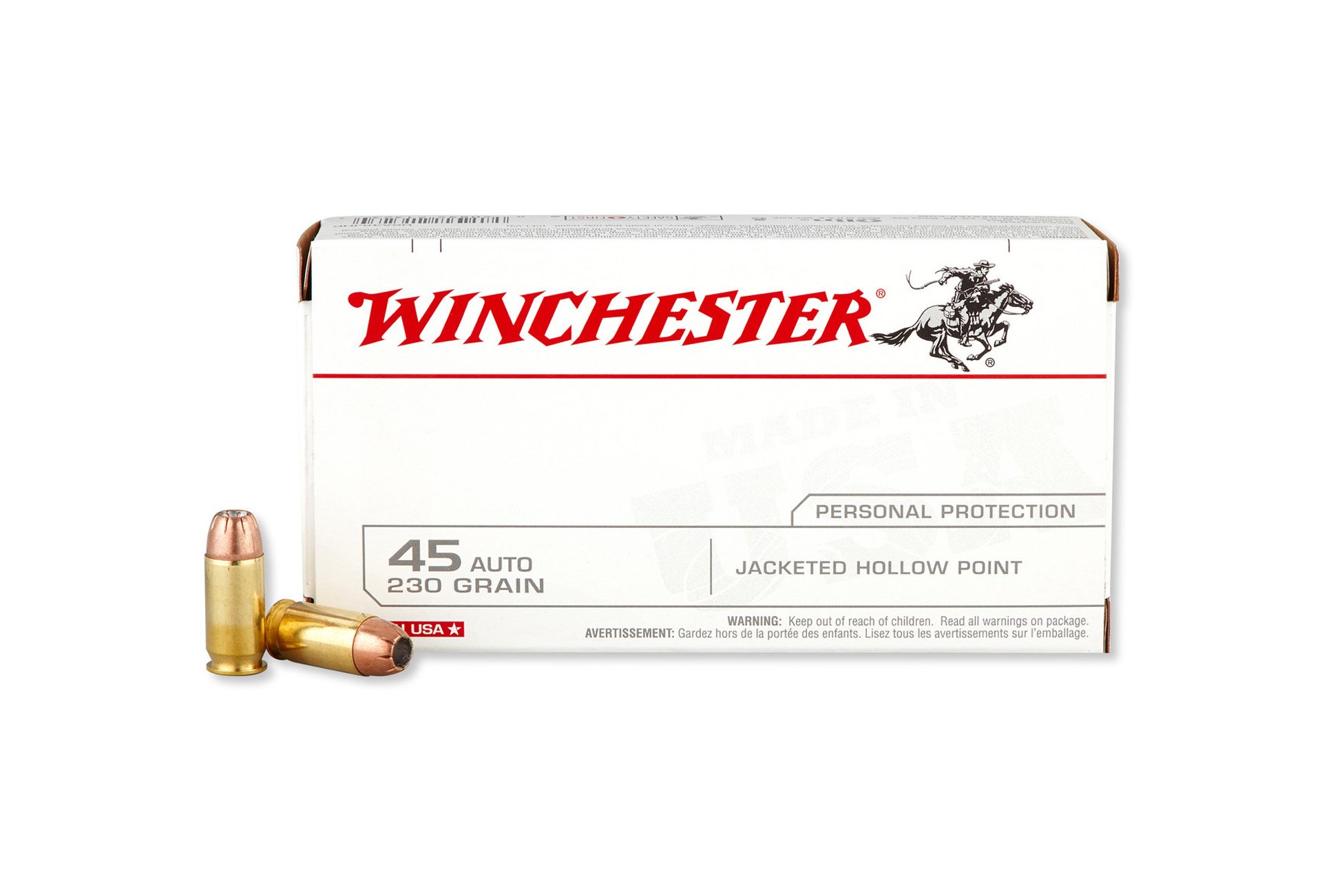 Winchester USA USA45JHP 45 ACP Auto 230 Grain Jacketed Hollow Point Handgun Ammo - 50 round box - USA45JHP